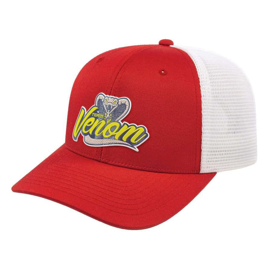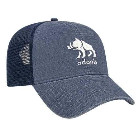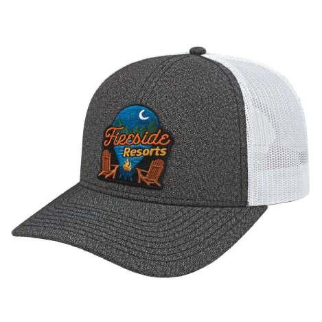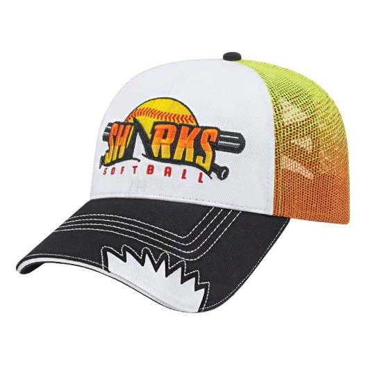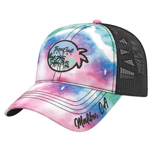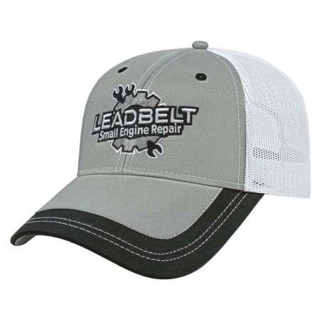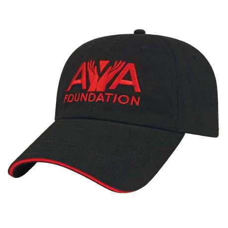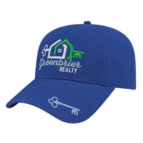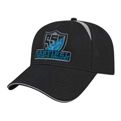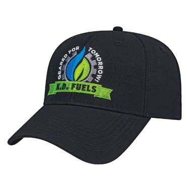 Limited to one color only. Available on five panel styles or offset on left or right panels of six panel styles. One-time $15.00(A) screen charge.