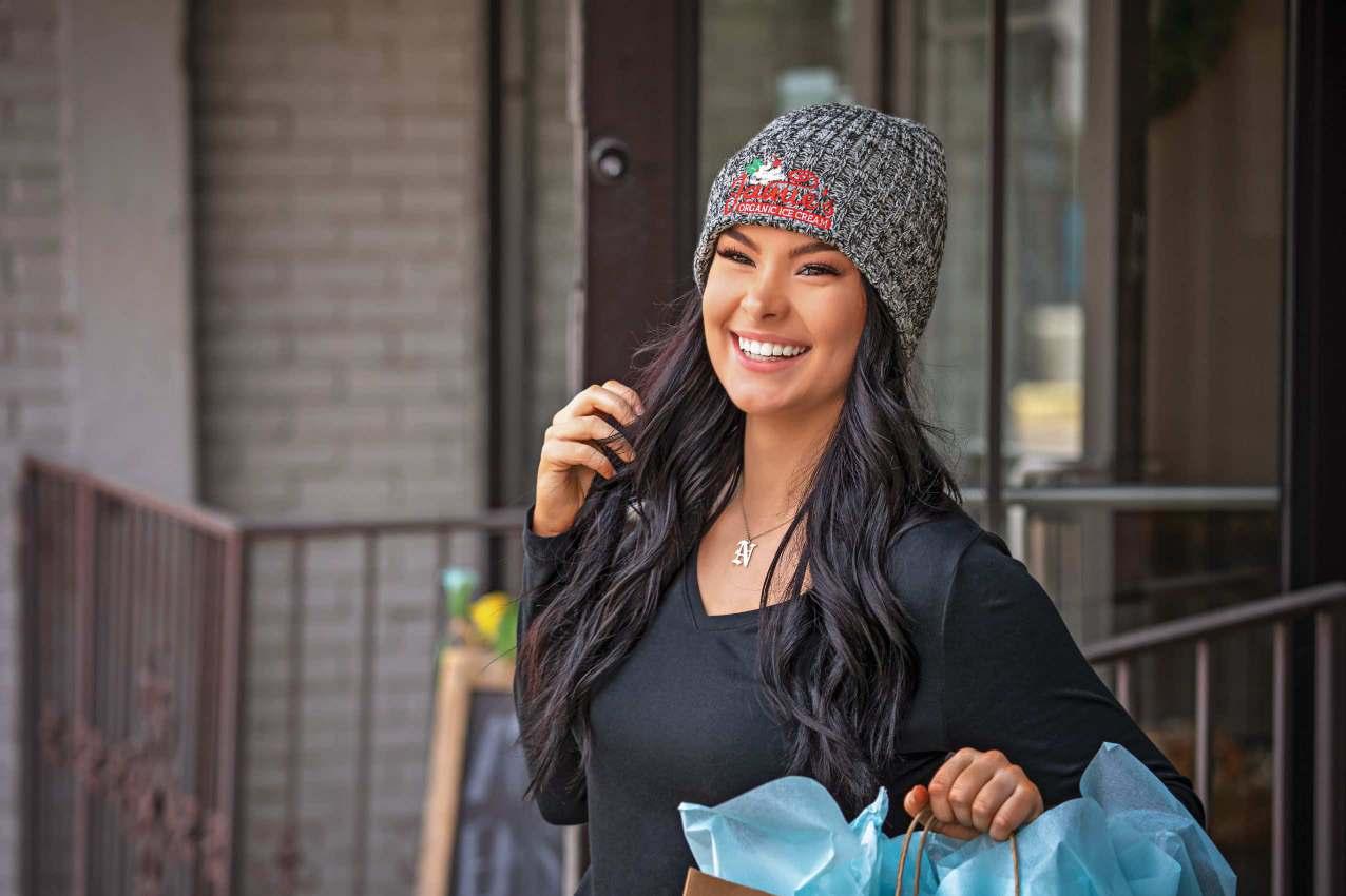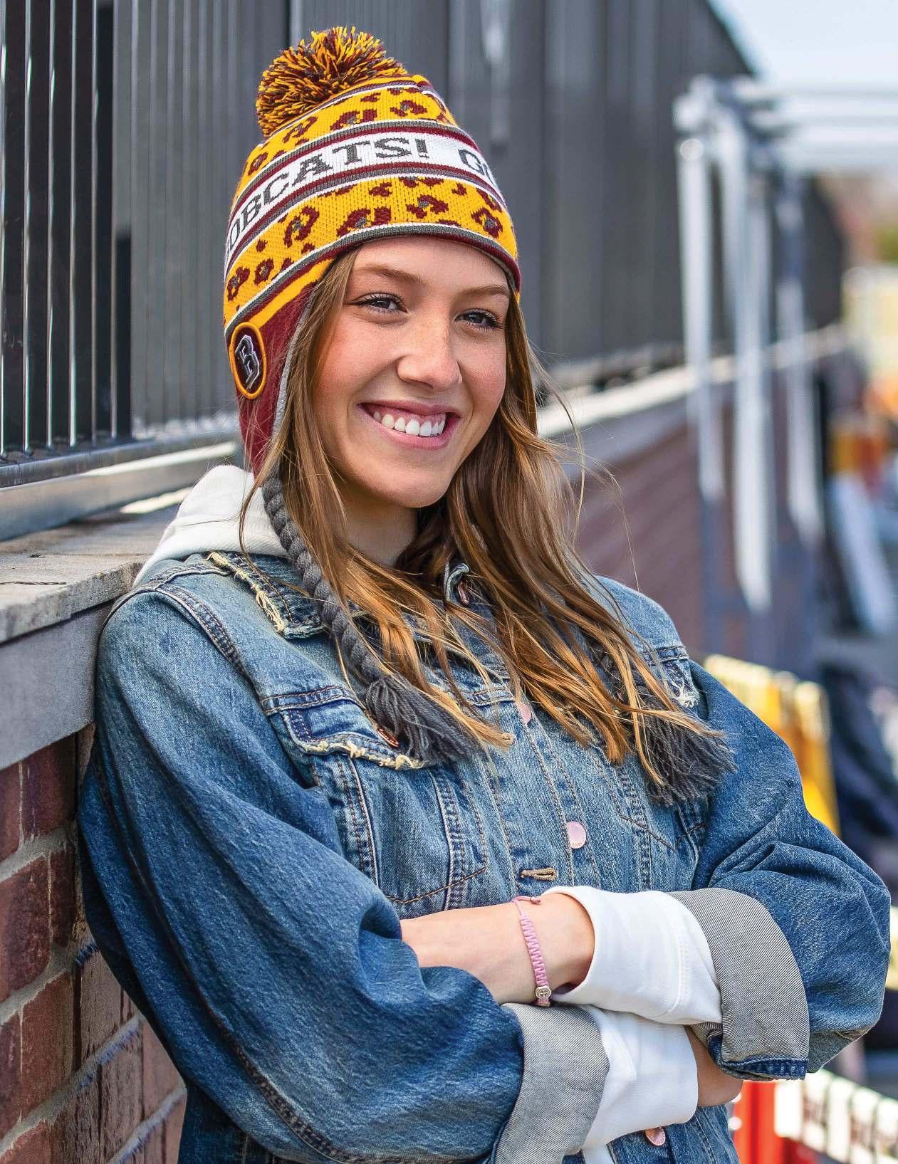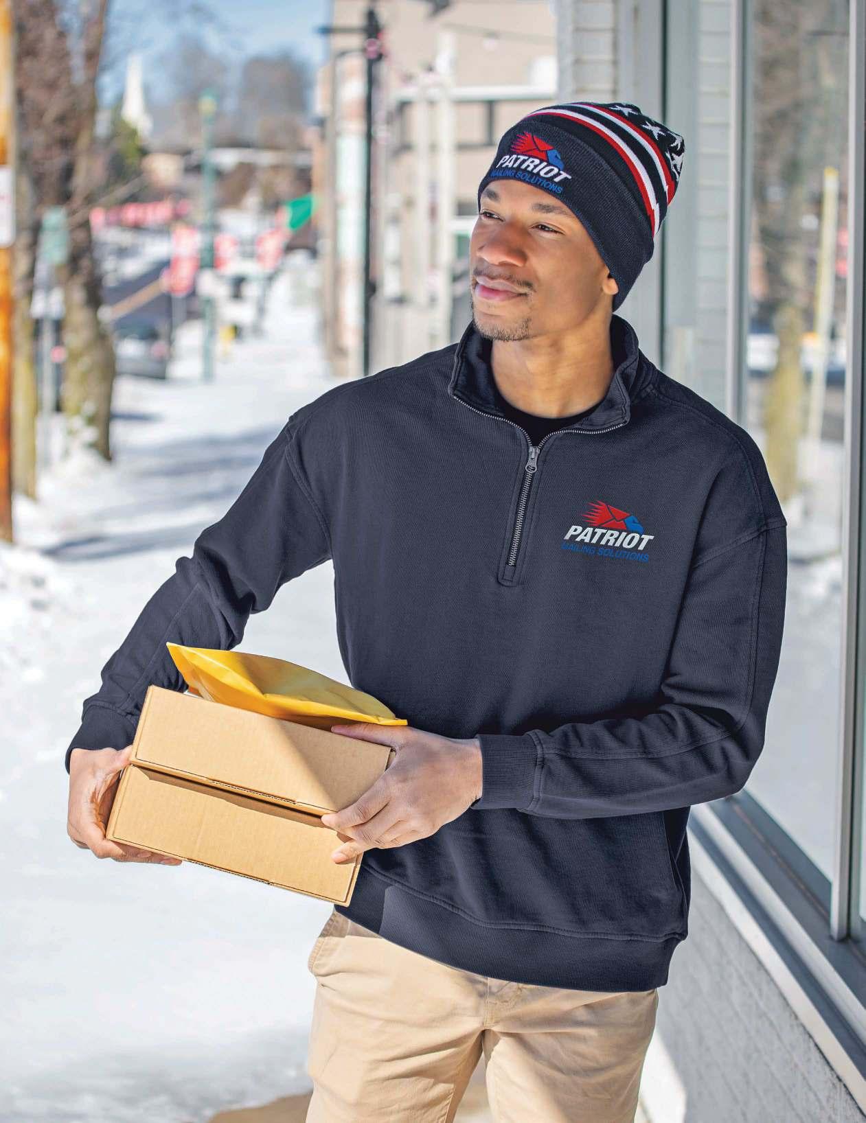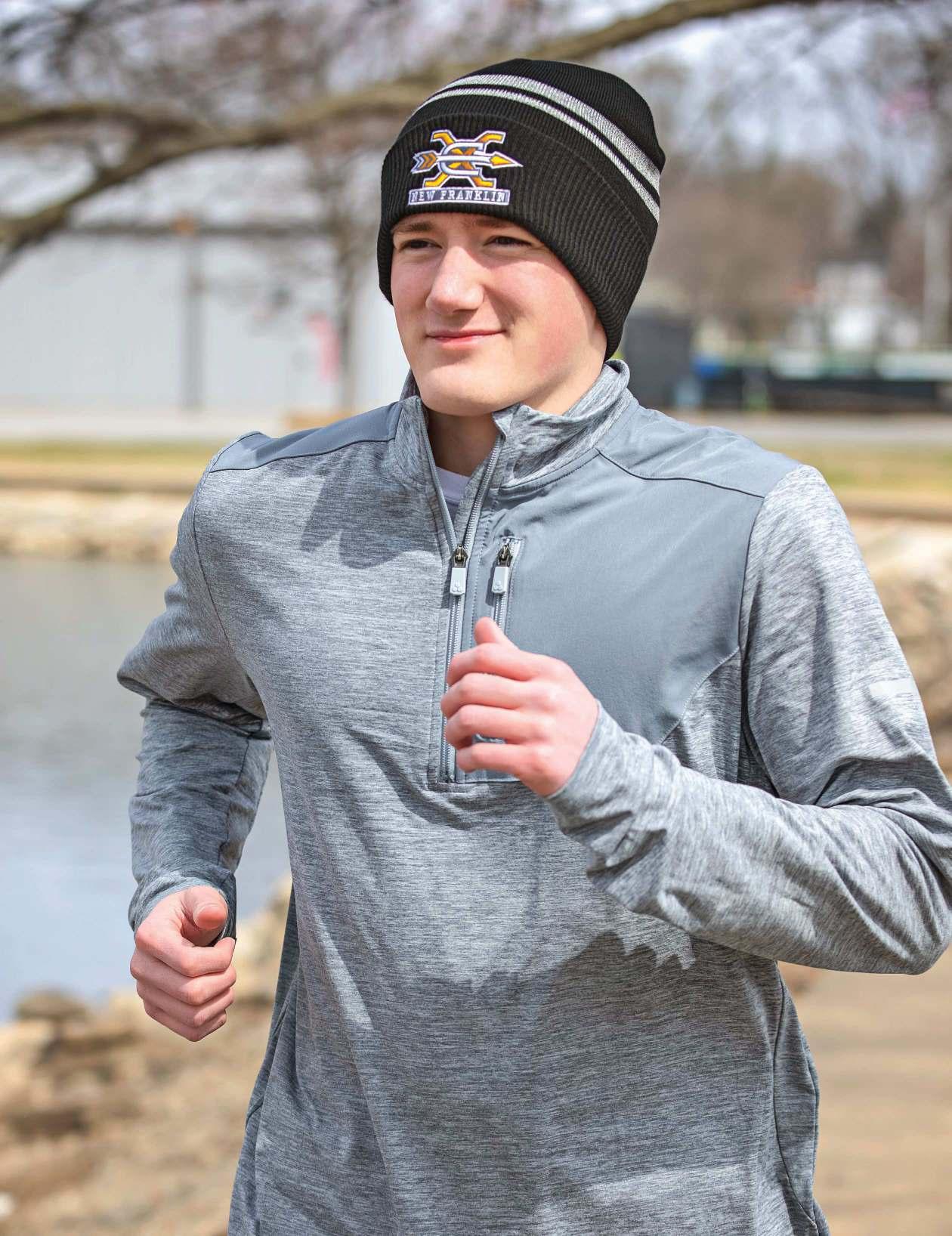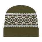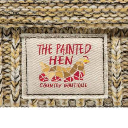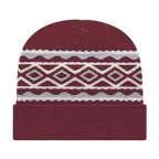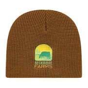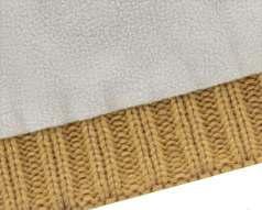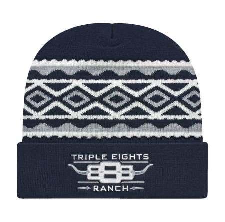 Custom knits are made with 100% acrylic yarn. Available colors are located on page 141. Choose up to four yarn colors when designing a custom knit. Due to color variations of dye lots, exact color matches of yarn are not guaranteed.
