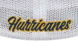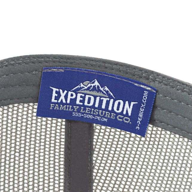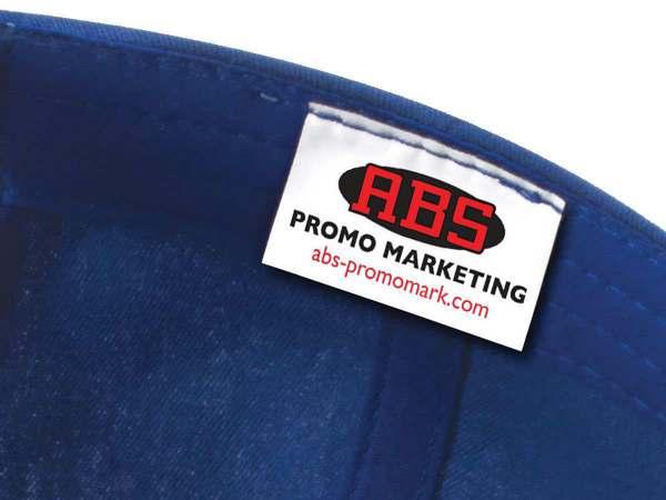 Custom woven labels are purchased in orders of 3000 pieces for $400(A). Labels are kept on hand & sewn into orders on request for $.70(A) per cap. Labels are available in two sizes: 2”x 1” and 2 ½”x 1”. Not available to be sewn into Flexfit 110® styles.