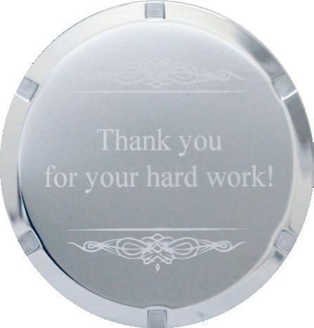Each completed watch is checked for quality, on time performance and a visual check against the approved proof. Next it is carefully packaged in a presentation box to ensure the watch makes it to its destination in perfect condition. Add customization to the packaging to take your award to the next level.