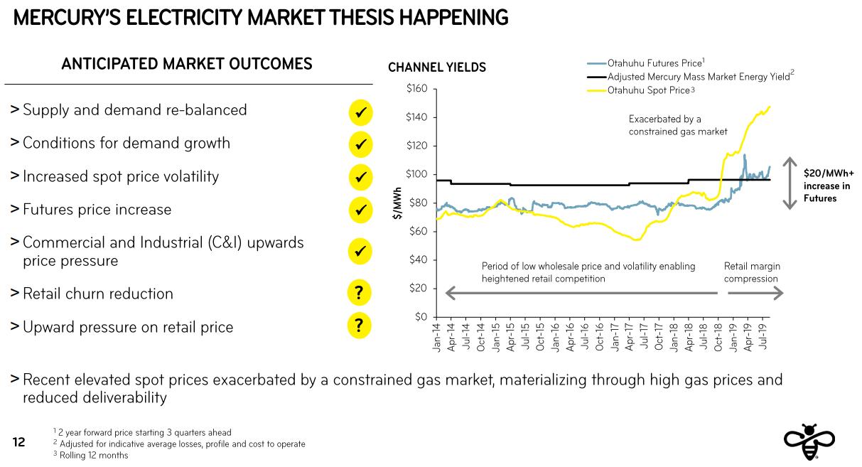 > Mercury acquires the Trustpower mass market retail business in May 2022. Integration of retail businesses well advanced. Synergies of $35m targeted following integration.