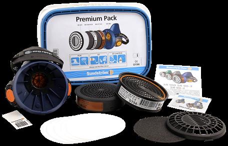 Innehåller: halvmask, partikelfilter, gasfilter, förfilter, förfilterhållare, rengöringsservett.