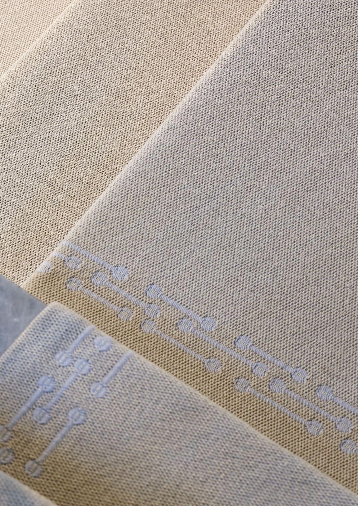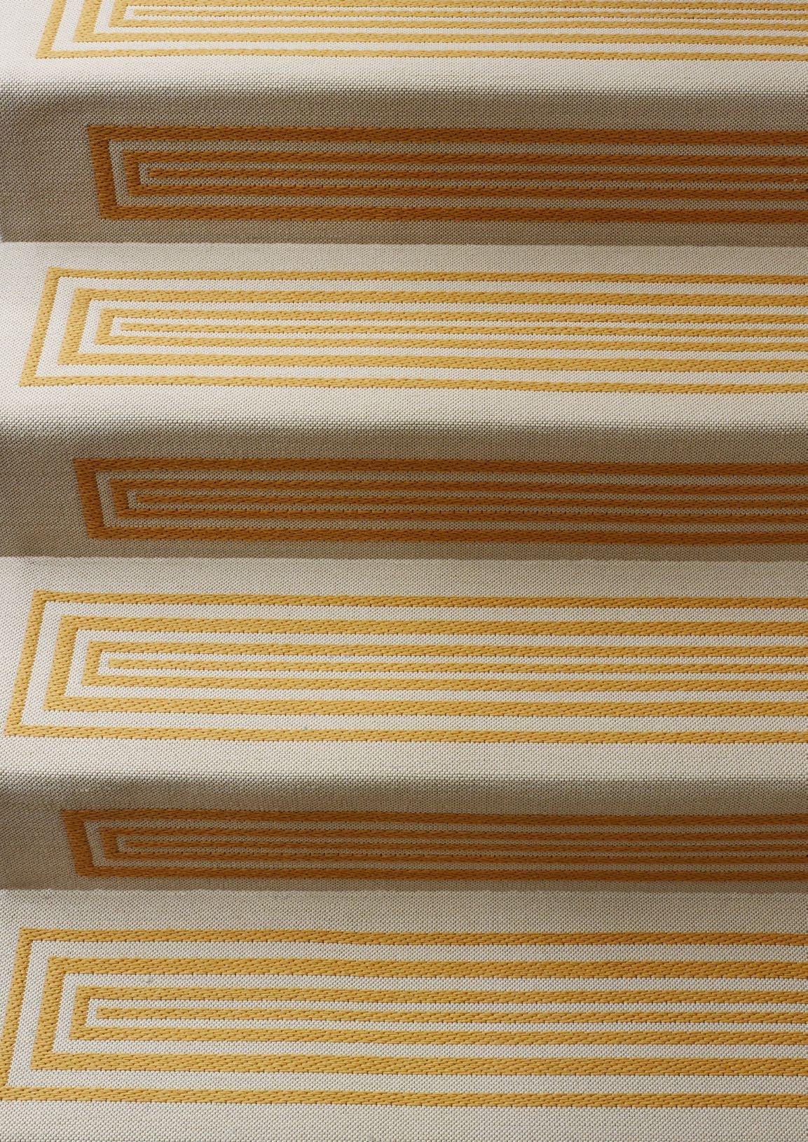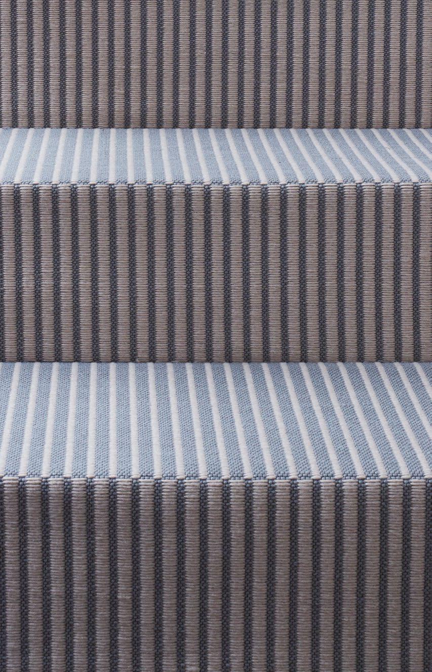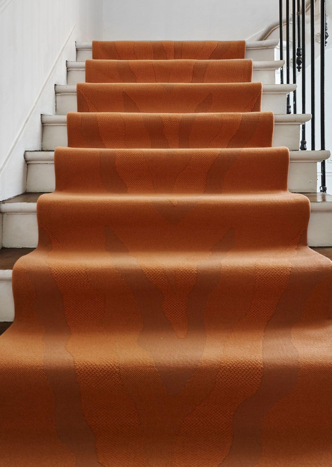 Our stair designs often differentiate the treads from the risers so that moving up feels different from moving down. Because stairs exist in three dimensions, the way a runner is seen and experienced changes with every angle and step. By shaping the weave, pattern, and texture to respond to these shifts, we create a journey that is dynamic and intentional—each ascent and descent revealing new surfaces, subtle textures, and the full sculptural presence of the stair.