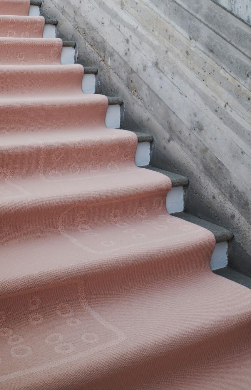 When a flat rug folds over a stair, it becomes a sculpture—its form shifting with every angle and every step. Designing a stair runner means paying attention to how the weave and yarns behave in three dimensions, how they bend at the nose of the tread, and how the pattern reveals itself as you move. We consider not only durability, but the optical flow of the piece in motion, creating a design that surrounds you and changes with you as you walk up or down.