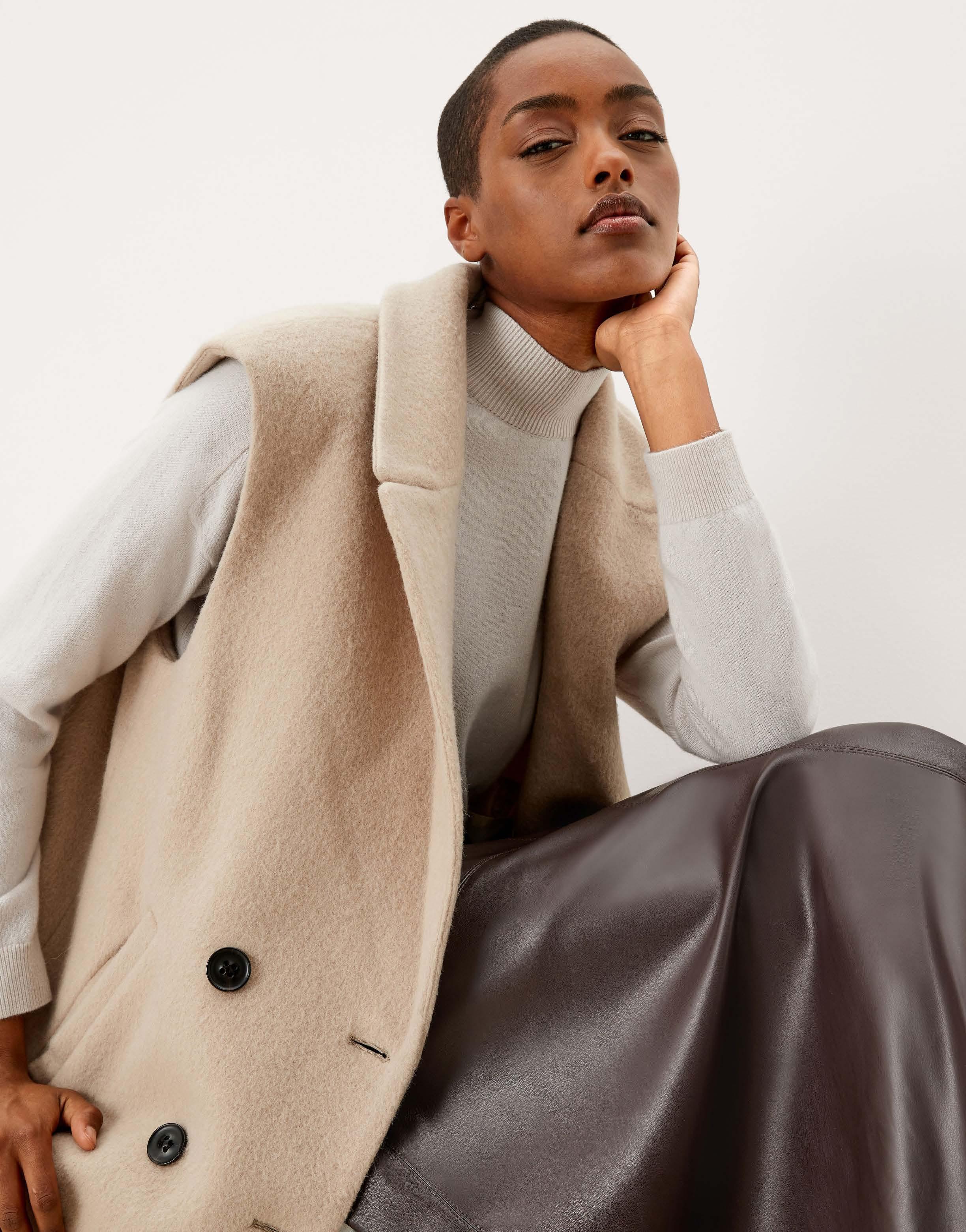 Natuurlijk in het kenmerkende kleurenpalet van neutrale tinten, inclusief de trendkleuren van dit seizoen zoals bisque, dark ash, light ecru en powder. Blouse Lola, light ecru, € 149,99 (Conscious Selection), top Clara, bisque, € 119,99 (Conscious Selection), broek Madison, powder, € 149,99 (Conscious Selection), broche JV SHEAM, antique gold, € 49,99, oorbellen JV TISSAIA, antique gold € 49,99, verkrijgbaar via joshv.com
