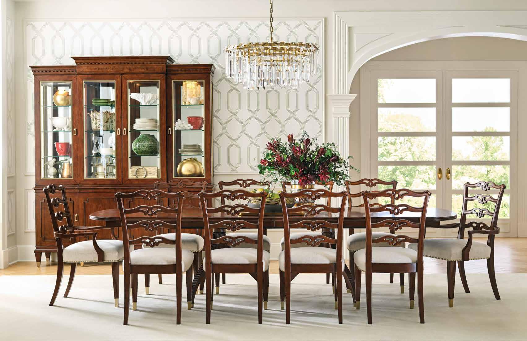 426-744R Meyers Rectangular Dining Table Package, 426-636 Bartley Side Chair, 426-637 Bartley Arm Chair, 426-850R Andover Breakfront China Package