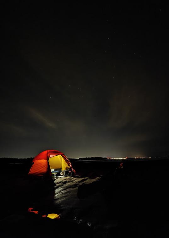 Syyskuu, Knapperskär, Espoo. Aina ei tarvitse lähteä kauas. Hieno, kirkas syyskuinen ilta Knapperskärillä. Taustalla loistavat Helsingin valot. Saarella oli pelkkiä melojia eri seuroista telttoineen. Sami Andersson