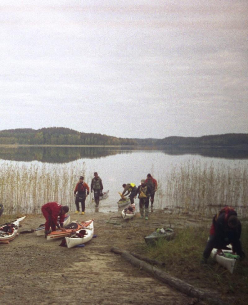 Sitten alkaa sää aallokoitua, kylmetä ja tummua. Pujottelemme kivikkojen läpi ja saavumme laavulle, jossa paistamme räiskäleitä ja juhlimme Riitan tonnariutta kuten teimme vuonna 2022 Röytässäkin. Seuraava päivä tarjoaa vastatuulta, sadetta ja vilakkaa. Hyvästi Maakalla. Suunnistan harhaan, mutta onneksi löydän kuitenkin autiotuvan naapurisaaresta. Joonas tuikkaa kamiinan tuleen, mutta toinen retkeläinen sahaa innoissaan sormeensa.
