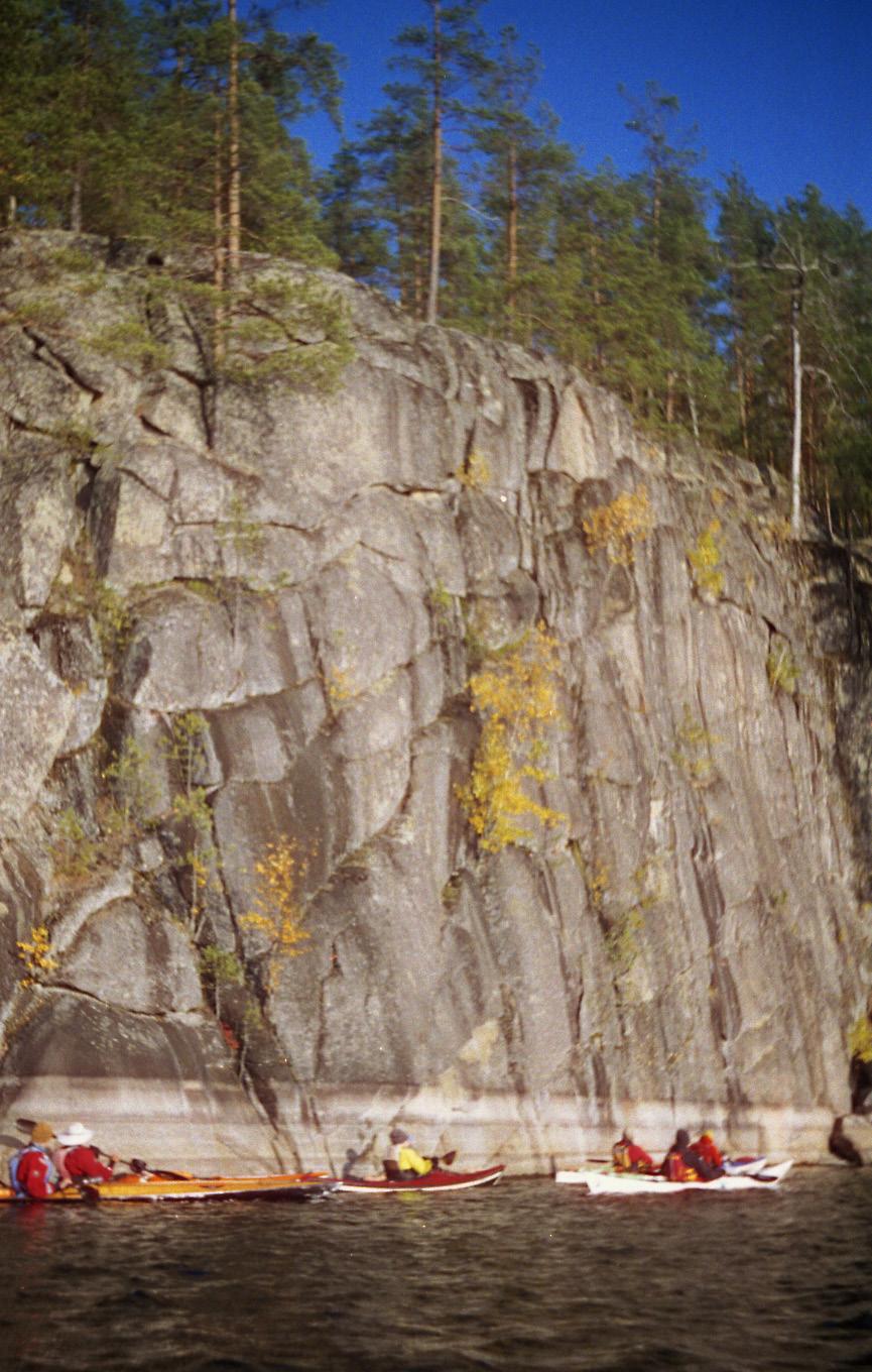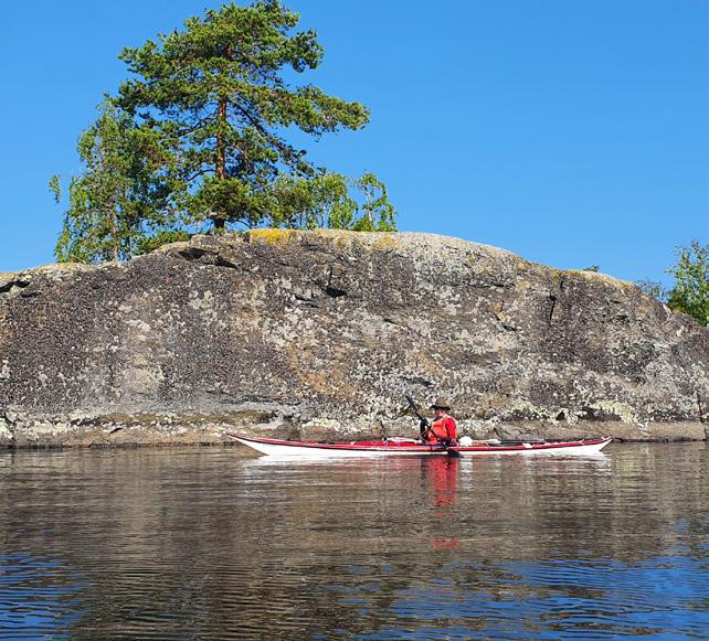 Tähtäimessä tarunhohtoinen Tetriniemi Aamulla saimme herätä kuhankeittäjän lauluun, ja jatkoimme talon kahvitarjoilun jälkeen auringonpaisteessa kohti tarunhohtoista Tetriniemeä. Ohitimme hurjia, korkeita kallioseinämiä ja upeita kivijyrkänteitä ja valuimme alas Pesolansaaren itärantaa lounaalle Mitinhiekkaan. Leiriniemessä oli kottaraisen kokoisia hyttysiä ja kirkasta uintivettä helteen kuivattamille. Köllöttelyn lomassa korjattiin yksi kajakin jalkatuki.