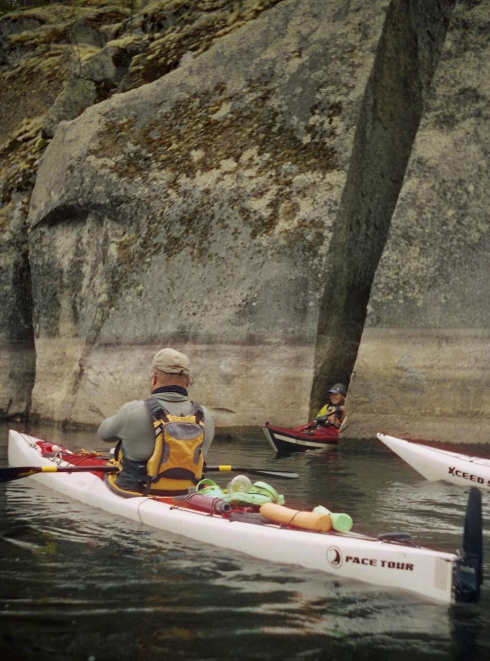 Aallot työntävät halukkaasti meidät pieneen satamaan. Saalistaan perkaavat kalastajat neuvovat ainoan loven laiturin takana, ja sekin on vaikea lasikuitukajakeille. Satama on kivilouhoksen ympäröimä kulho.