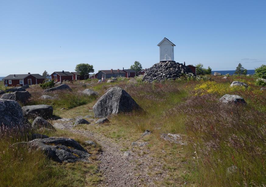 rauhallinen maisema, paikalliset istuskelemassa ”baarin” luona, kala-aittojen ammoin eläneet kuolleet koristukset, tuulessa heiluvat lämpimät heinät, uteliaat punajalkaviklot ja ruohojen keskellä karikivet, jotka paikallinen asukas meille osoittaa. Istumme päätösten tekemiseen tarkoitetulla tasaisella kivellä ja mietimme Maakallaa.