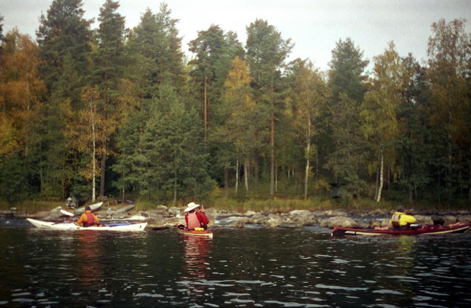 Oltuani yksin yötä Koirasaarella lähdin puoliltapäivin melomaan lounaaseen viiden kilometrin etappia kohti Stenskäriä. Kuva on melkein tasan puolivälissä matkalla kohti Stenskäriä. Paikkaan on vajalta linnuntietä noin 13 km. Kuva on otettu kohti etelää, Viroa. Kuvassa näkyy paljon lentokoneiden vanoja, mutta en löytänyt mistään tietoa lentotapahtumasta. Henri Modig