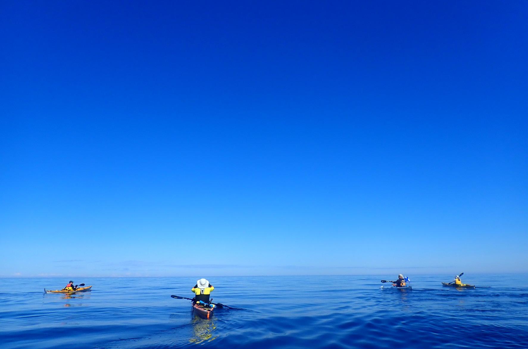 Oma olo ei kuitenkaan ole tyhjä – päinvastoin, olemme tulvillaan juuri päättynyttä melontaa, se keinuttaa vielä kuin päättymätön riemu ja matka lempeillä sinisillä aalloilla mantereen hiekkarannoille.