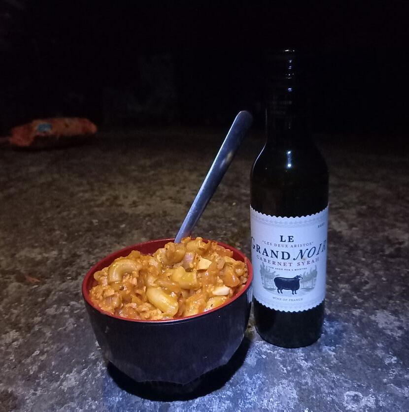 Pro tips: pakkaa soijarouhe ja makaronit minigrippussiin ja mittaa mausteet joukkoon jo kotona. Valitse täysjyväpasta jos haluat paljon proteiinia. Huomioi makaronin pitkä keittoaika – valitse sen sijaan nopeasti keittyvä pasta ja vähennä veden määrää hieman, jos haluat ruoan nopeasti valmiiksi!
