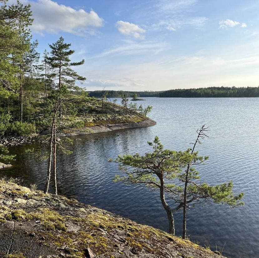 Kuva on otettu heinäkuun paikkeilla Koloveden kansallispuiston pienestä väylästä, josta siirryttiin toiselle puolelle saaria. Koloveden alue on todella kaunis, etenkin lämpimään heinäkuun aikaan, kun muualla on sinilevää. Aurinko paahtoi täydellä teholla. Uida sai vähän väliä. Kati Taipalmaa