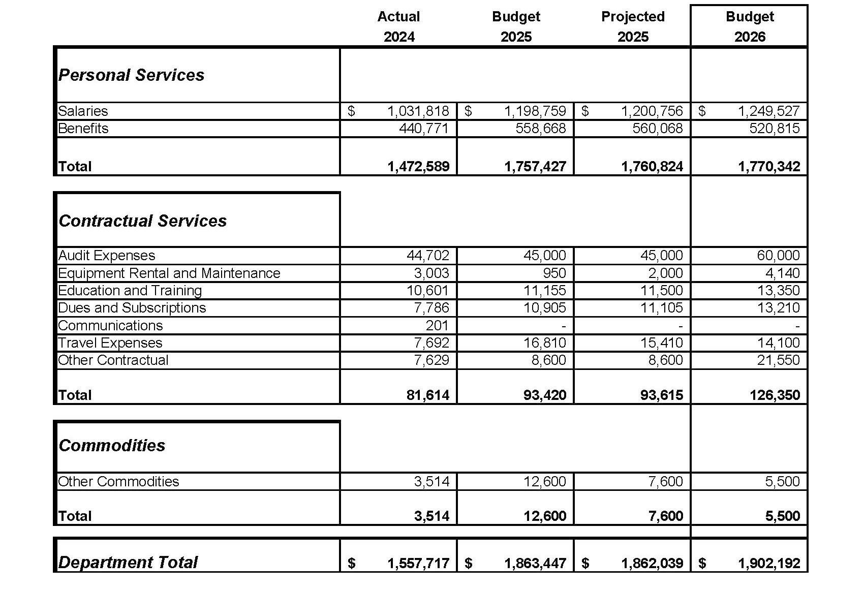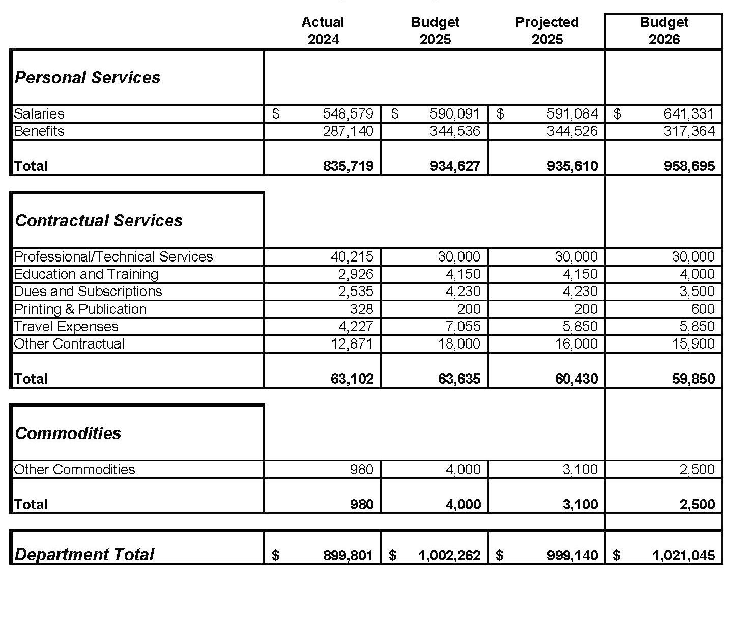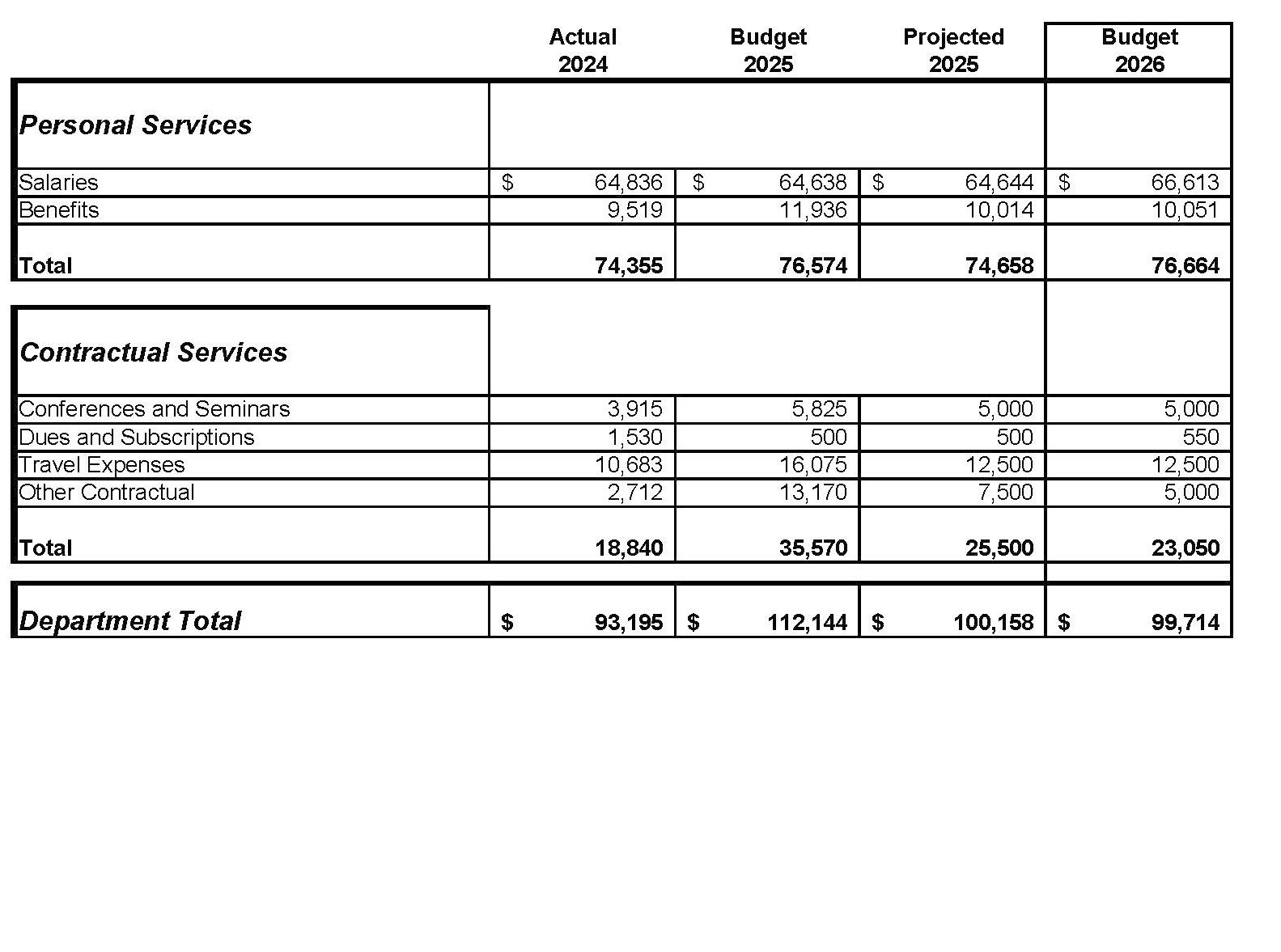 Contractual Service: Services rendered to the City by private firms, individuals or other governmental agencies. Examples include, insurance, utility costs, printing services, and temporary employees.
