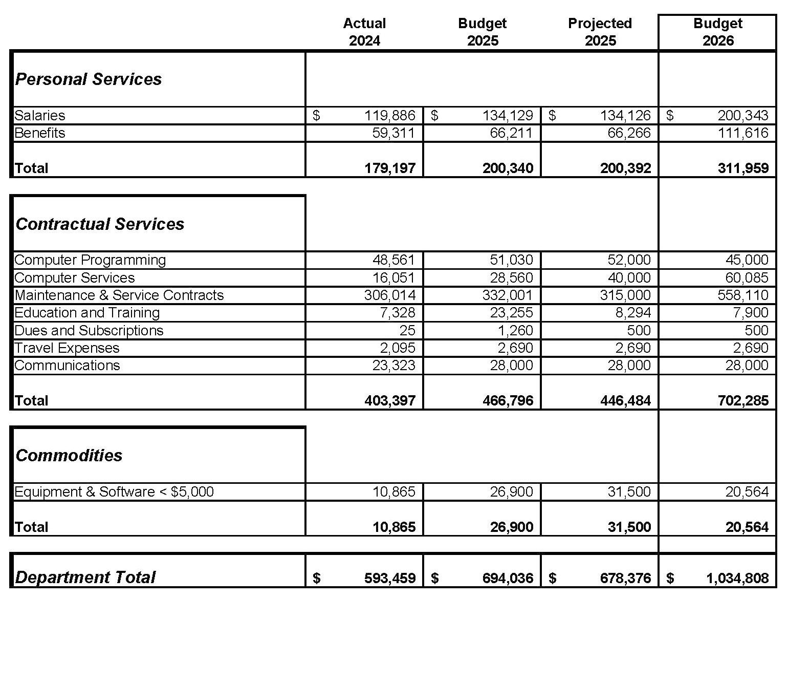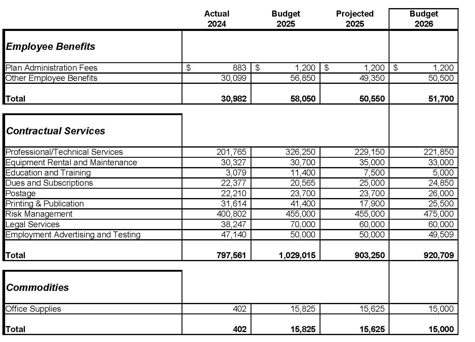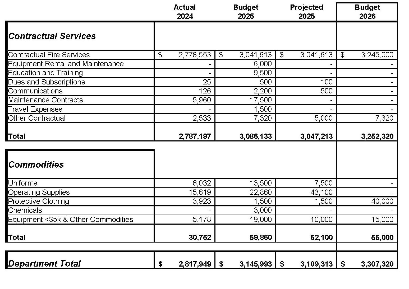 Contractual Service: Services rendered to the City by private firms, individuals or other governmental agencies. Examples include, insurance, utility costs, printing services, and temporary employees.