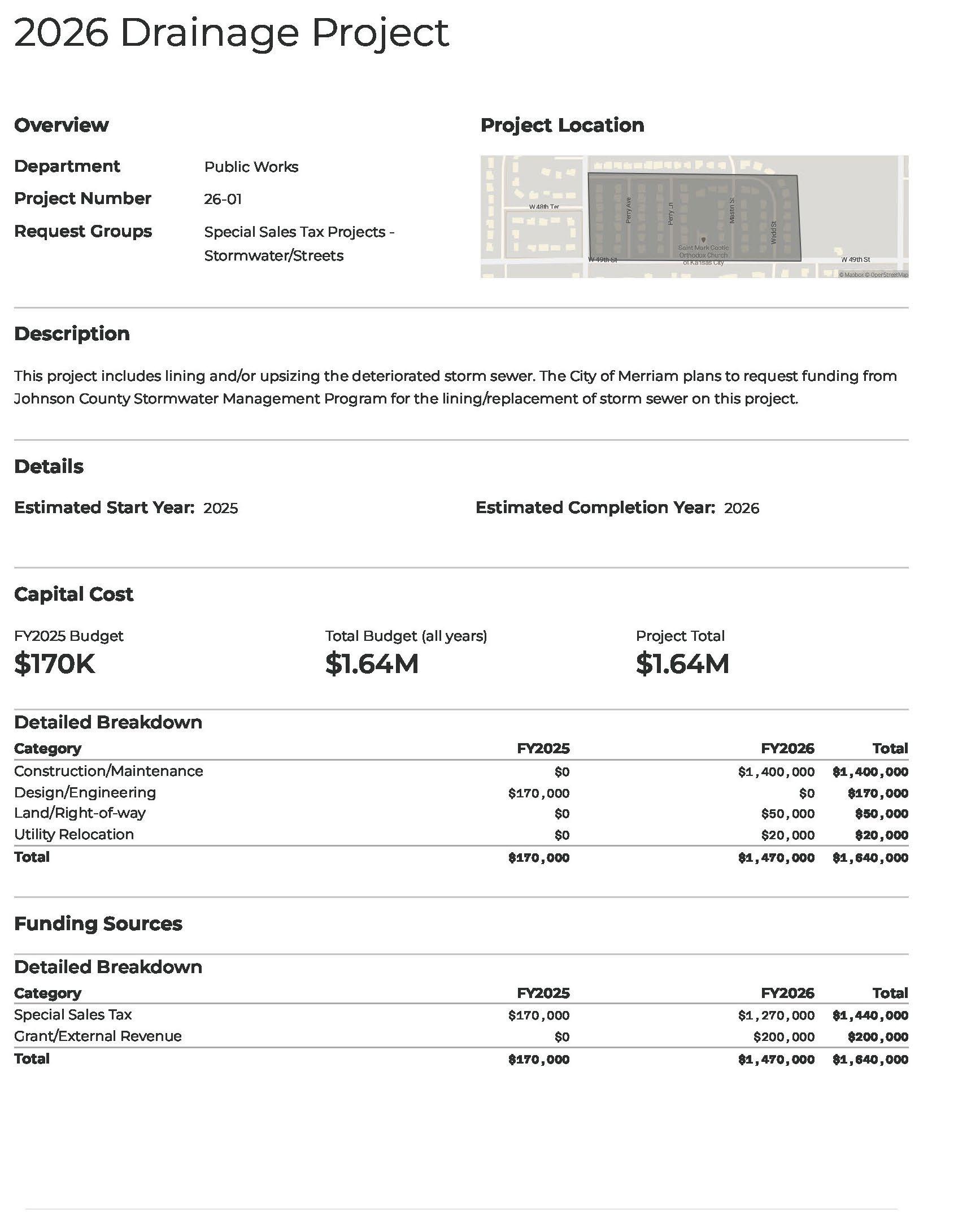 Sales Tax: The City of Merriam has an ongoing 1% general sales tax on all retail sales. The City also collects a .25% sales tax for streets/stormwater improvements which expires December 31, 2020. In September 2017, voters approved another .25% sales tax for parks and recreation to fund a new community center. The new tax will be effective from January 1, 2018 through December 31, 2027.