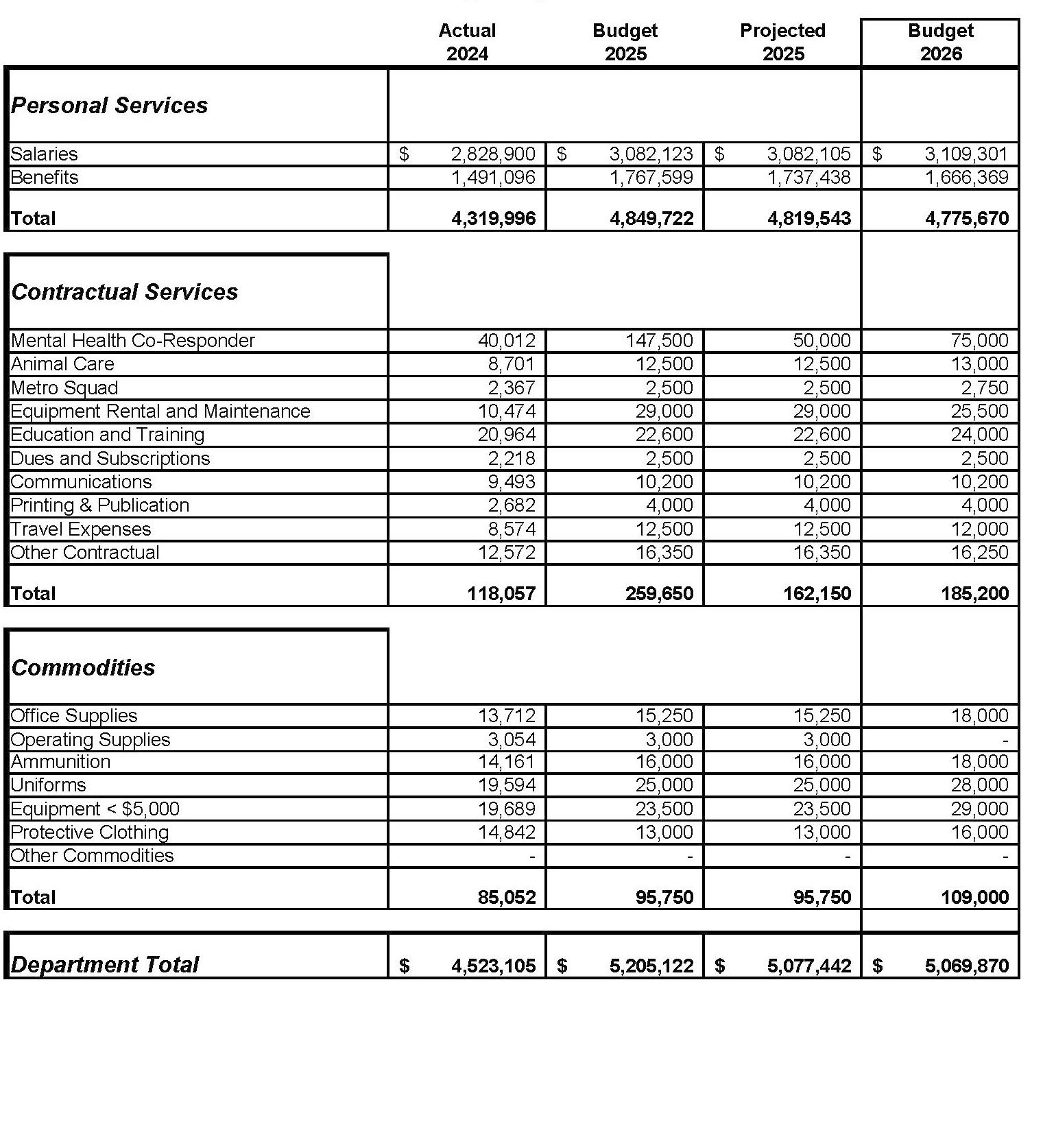 Largest General Fund Department Budget: Police – $5,352,370