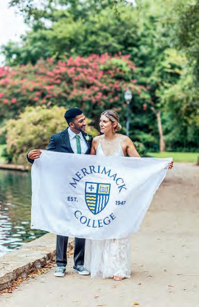  ANDREW WISE ’18 married ALEXANDRA MACFARLANE WISE ’17 in summer 2022 surrounded by their Merrimack friends and family. [9]