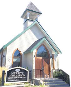 On-call 24 Hrs.aday:250-378-2141 or 1-800-668-3379 •www.Mer rittFuneralChapel.com Mon, Tues,Thurs &Fri.:10:00am -3:00pm •Wednesday1:00pm -6:00pm /2113Granite Ave.,Mer ritt, BC Local &Caring. Proudly supporting our community since 1929. Celebrating each life like no other ADivision of Service Corporation International (Canada) ULC Merritt Funeral Chapel
