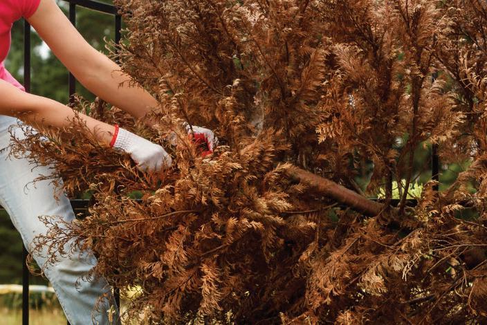 a a ge p va e backya d w h matu e t ees ceda hedge and