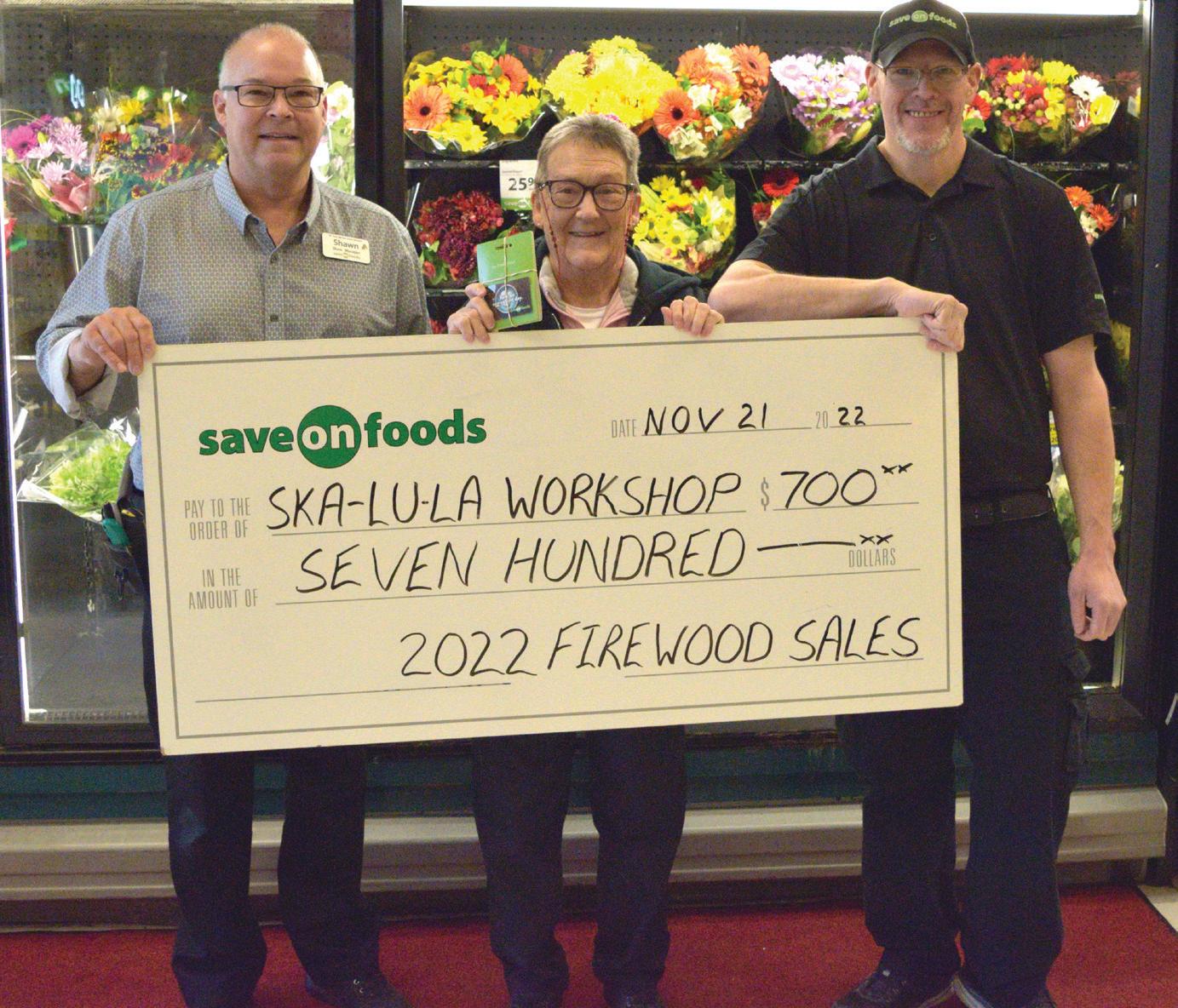 Phyllis ‘Rusty’ Brewer receives cheque from Save-On Foods on behalf of Ska-Lu-La Workshop. Izaiah Reyes/Herald
