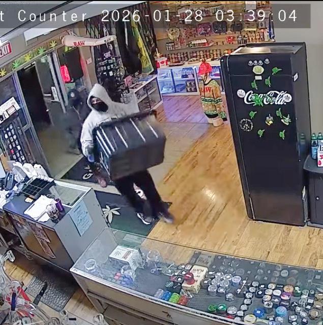 At around 3:30a.m., surveillance cameras within The Lemonade Stand on Quilchena Avenue captured two individuals, both wearing hoods and masks, e ntering the store with tote bins. The suspects stole the store’s entire line of Fog vapes and Yocan Herb units, according to Shannon McMichael, executive assistant to store owner Wesley Lesosky, adding that they were