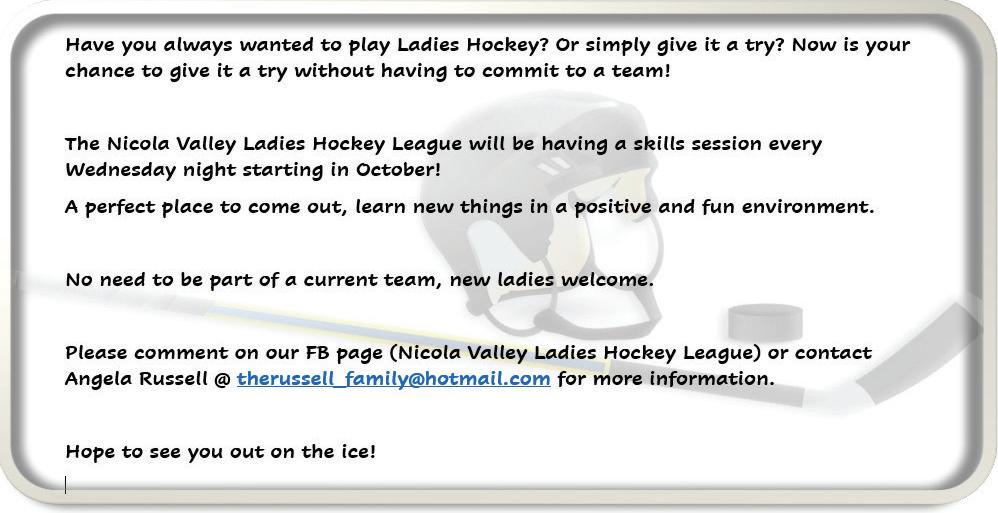 Clement encouraged residents to join the Nicola Valley ER Crisis Facebook group, which can be found online at www.facebook.com/ groups/198040526311962.