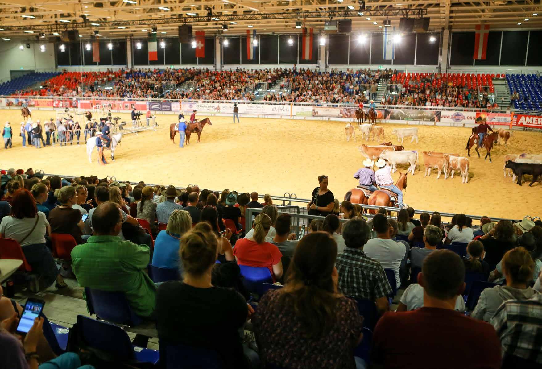 In 2023 erwarten wir wieder Teilnehmer aus über 20 Ländern, darunter die USA, Kanada und viele europäische Nationen. Über fünfzig Entscheidungen stehen an, darunter Highlights wie die packenden Finals in den Abendshows am Freitag und Samstag: Die European Championship Klassen „NCHA European Cutting Cup”, „ERCHA European Reined Cow Horse Derby“ und der Reiningklasse „NRHA Bronze Trophy”. Neben den großen European Championship All-Around Klassen wie „Ranch Riding“ und „Trail“ wird auch in diesem Jahr wieder ein ganz besonderes Highlight die Klasse BridlessCutting sein, eine Turnierklasse, wo das Pferd ohne Kopfstück geritten wird.