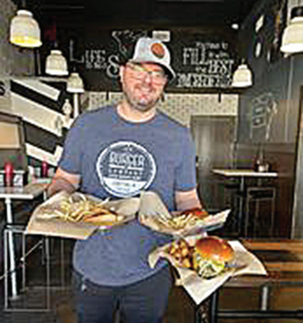 BEN CARRIS, owner of Ben's Burgers in Ankeny, holds their top 10 burger selection, the Honey Peanut Butter Burger, which the restaurant released in March.