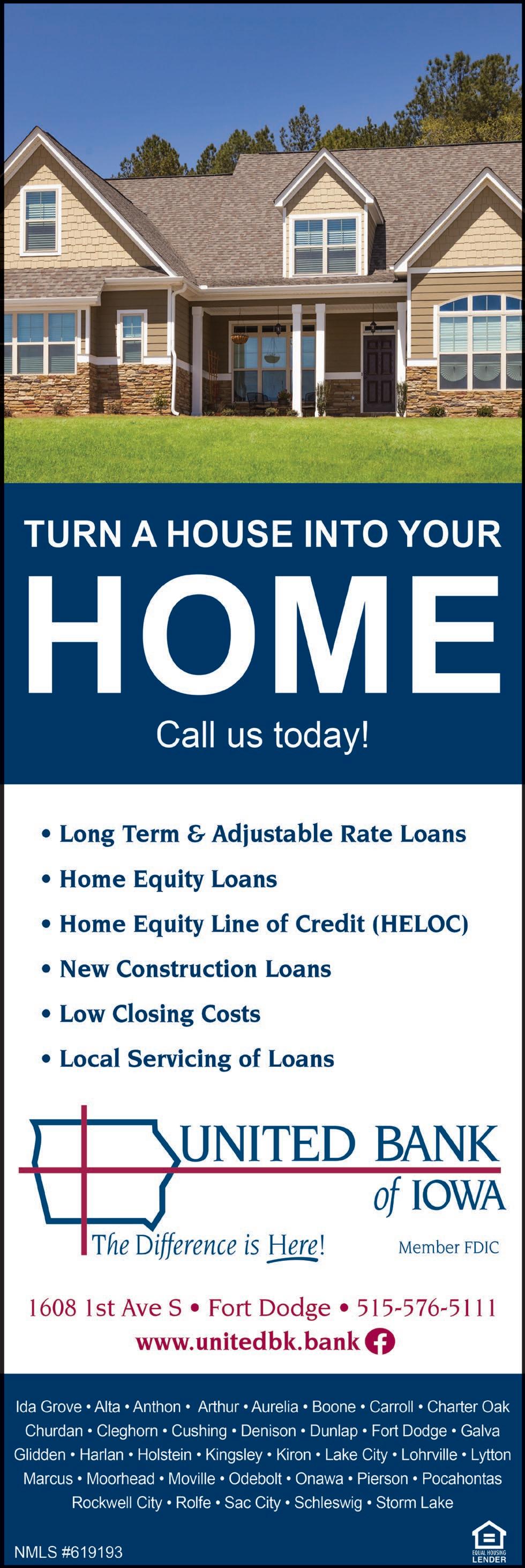 availa.bank 702 Main St · PO Box 280 Jewell, IA 50130 · 515.827.5443 We’re available for and your community. Our name says it all. We’re availa ble to you, your family and your community 130 North 29th Street, Fort Dodge 515-955-2265 STOP IN AND SEE PATTY FOR ALL YOUR MORTGAGE NEEDS! Thank you for Voting Availa Bank • Best Bank Winner • Best Loan Service Winner • Best Loan Officer-Patty Larson PATTY LARSON Assistant Vice President Mortgage Loan Officer (NMLS #1929144) Real Estate Buyers’ Guide • April 28, 2024