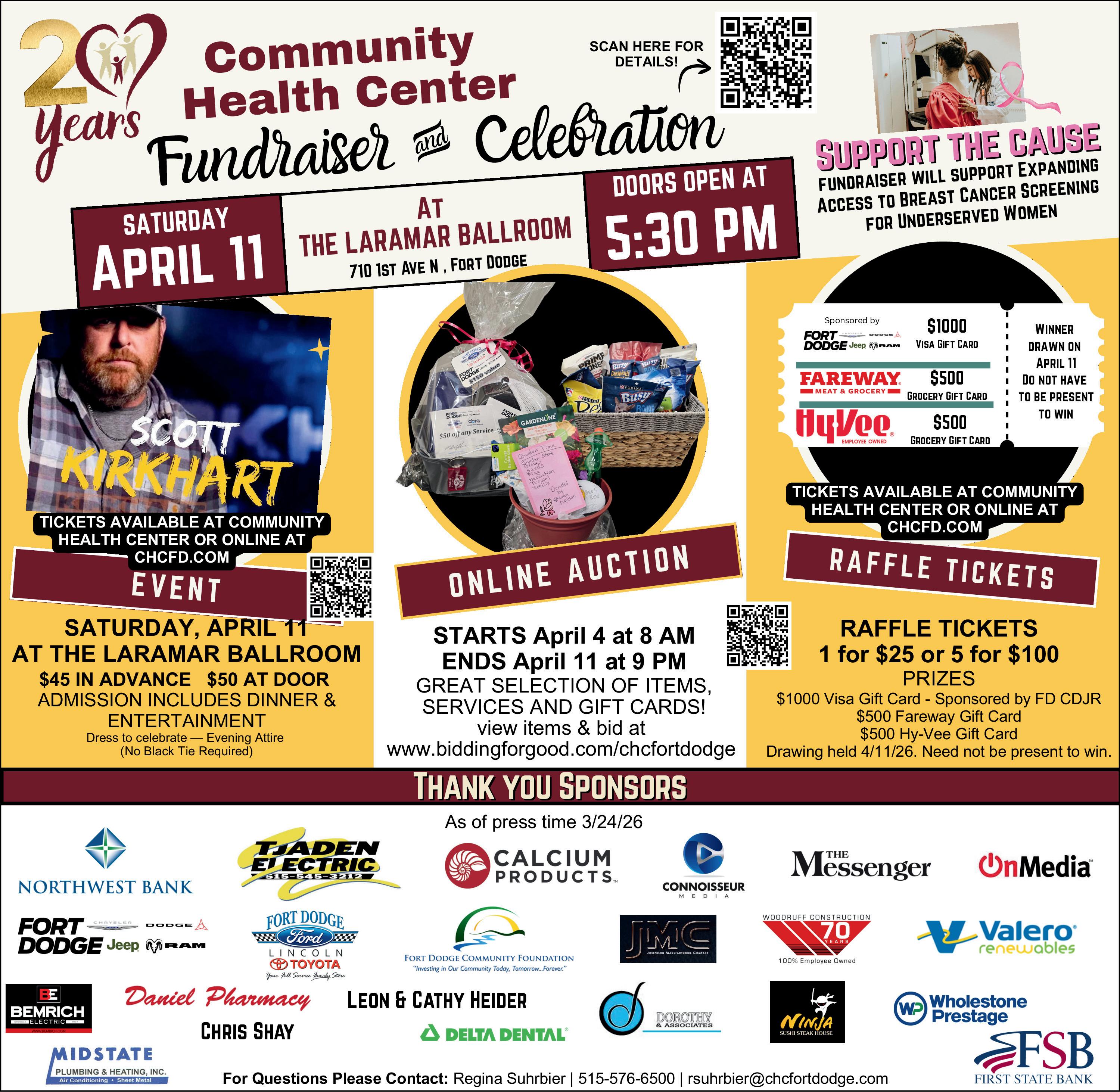 The Community Health Center of Fort Dodge announced that its annual fundraising event will be held on Saturday, April 11, beginning at 5:30 p.m. at The Laramar Ballroom in Fort Dodge.