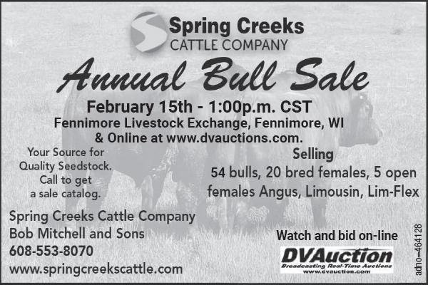 Selling 54 bulls and 20 bred females. Call 608-553-8070 (MCN)