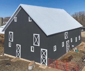 roof were already in place, the couple has continued to enhance the barn in several ways. Corey Cripe built all new doors and windows, welding them together from heavy-duty materials. He also built a round bale feeder, complete with a roof to keep the rain and snow off the bales, as much as possible.