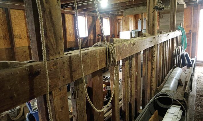 THE ORIGINAL WOOD STANCHIONS for milking dairy cows go back to when the barn was built in 1937.
