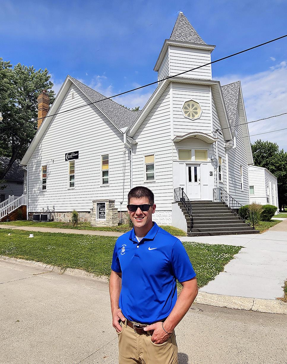 blocks south of the downtown business district) in 2018. He invested countless hours and plenty of sweat equity (along with new white steel siding and a new roof) as he renovated the historic church, which was built in 1890.