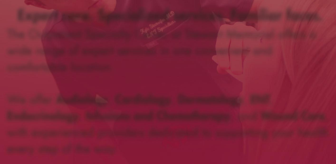 e offer udiol g , Cardiolog , Dermatolog , EN , End crin l g , Infusions and Chemoth rap , and und Care, ith e perienced pro iders dedicated to supporting our health e er step of the a