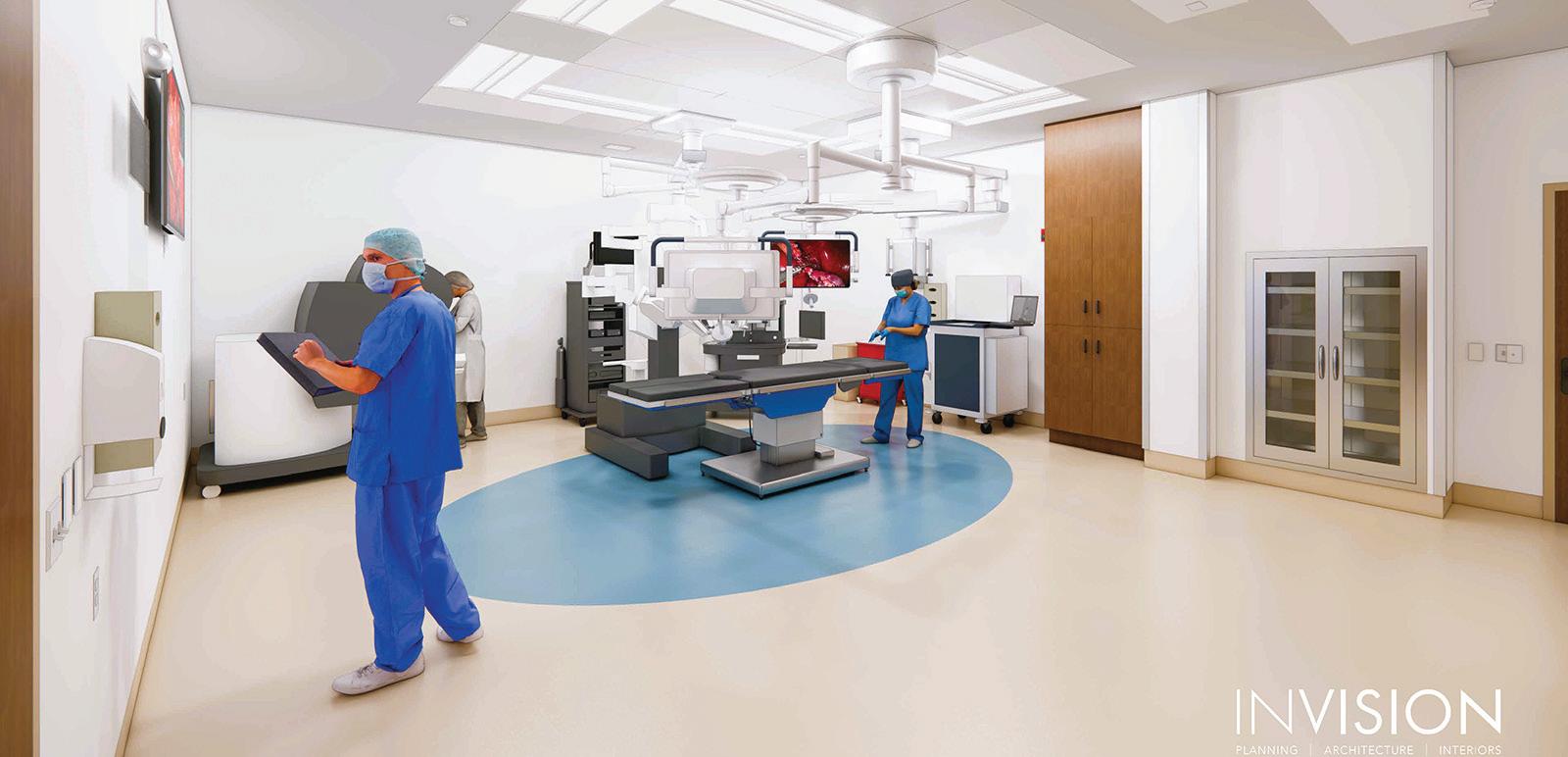 When complete, the center will feature five operating rooms, two endoscopy suites, 24 pre- and post-operative rooms and the central sterilization facility.
