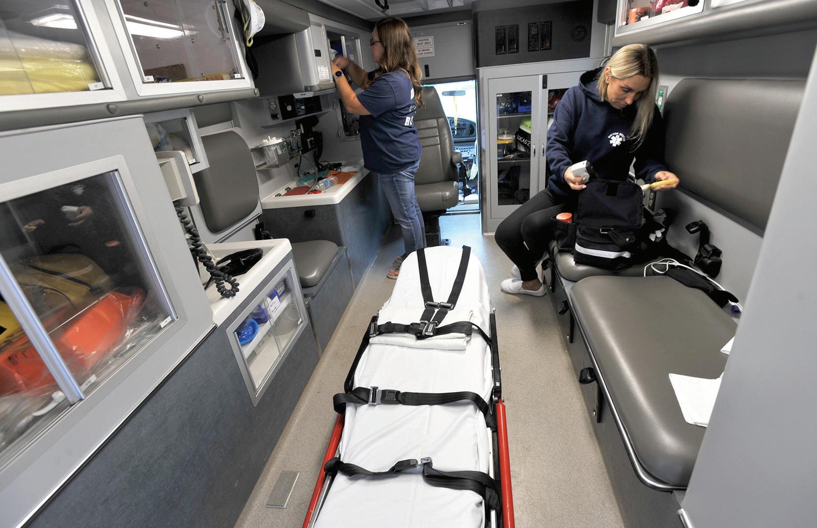 PIEPER, at left, along with fellow EMT Steph Swanson check over supplies and equipment in one of the ambulances. The Dayton Rescue Squad is one of the units that will benefit from a countywide levy of 75 cents per $1,000 of taxable value the voters approved to support emergency medical care as an essential service.