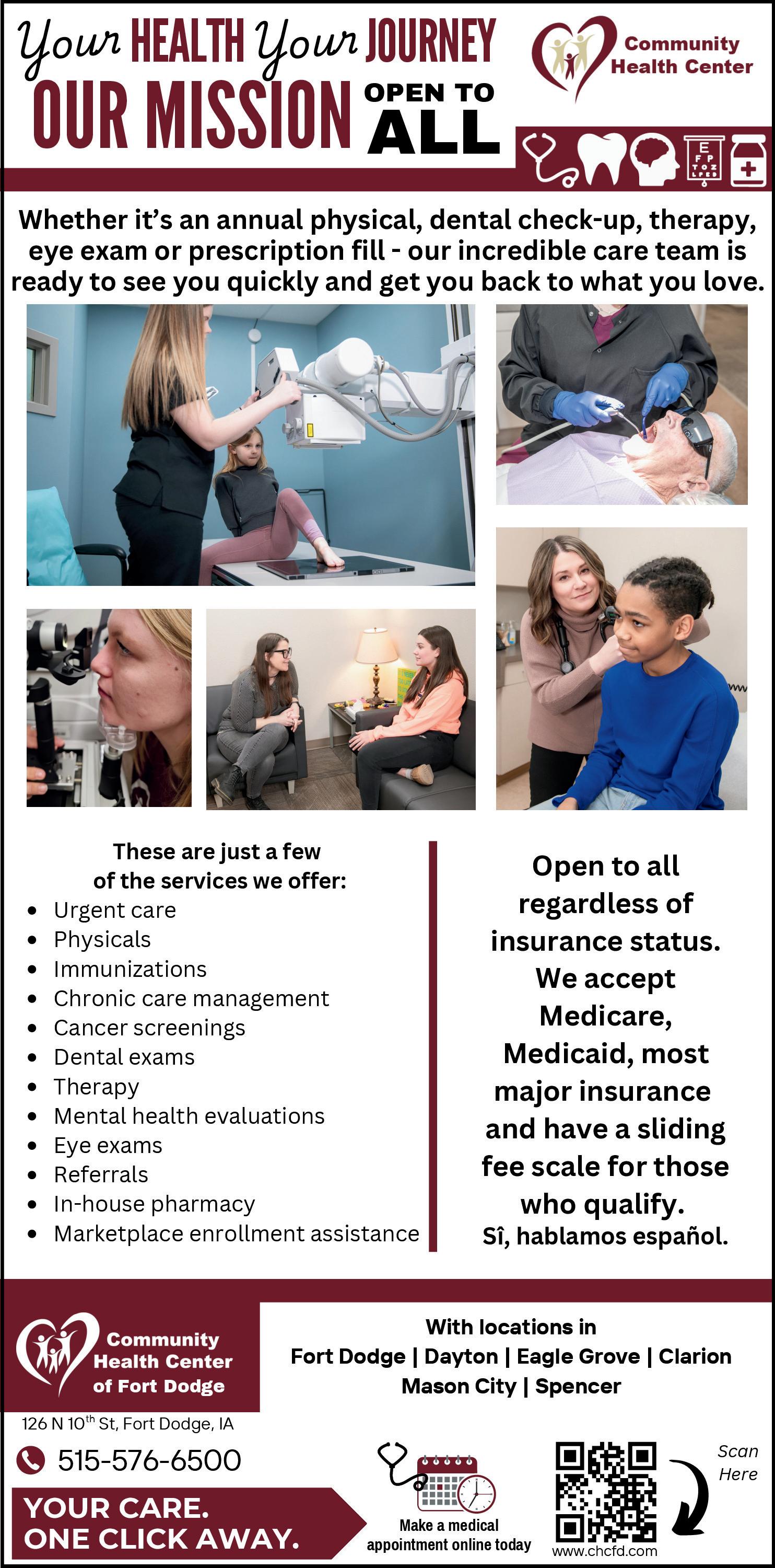 Medical, dental and behavioral health care are offered at all of the sites except the one in Dayton, which only offers medical care. Additionally, optometry is now being offered in Fort Dodge and Mason City
