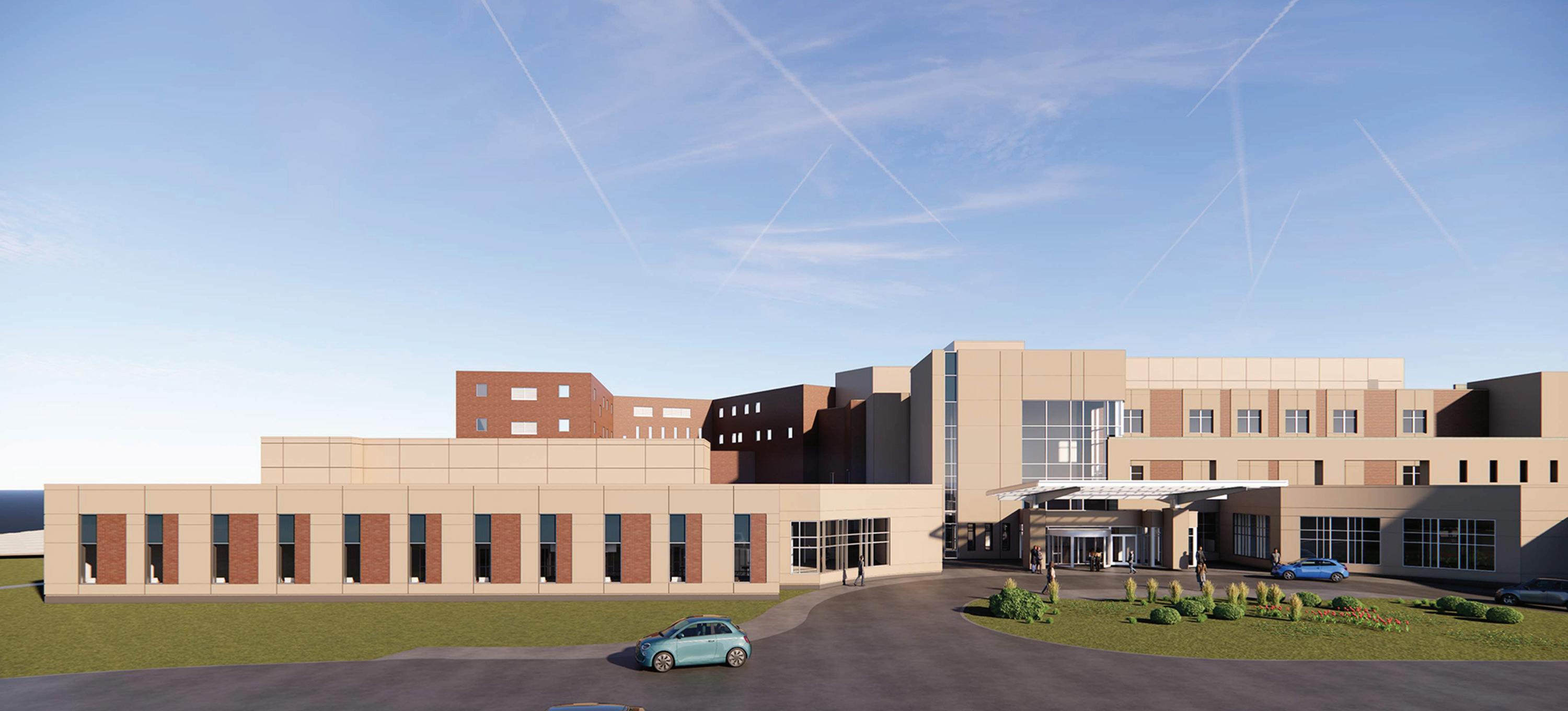 The project will consolidate all inpatient and outpatient surgery services in a new area just west of the main entrance of the hospital. It involves a new addition on the front of the build-