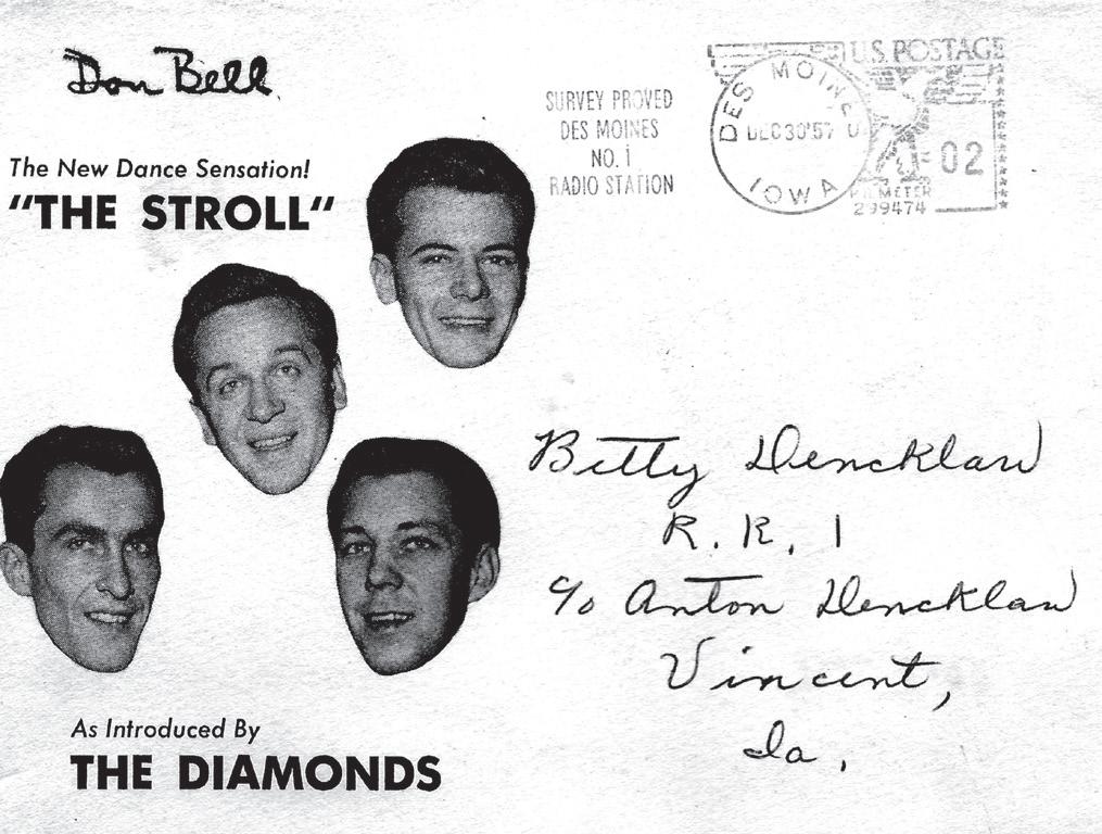 the review of the concert from the Ft Dodge Messenger, and her Diamonds “Stroll” instruction card. Most of these are now seen in “Twist and Shout” for the first time. This sharing of old rock and roll memorabilia goes to prove again, how lucky Fort Dodge has been to have had the Laramar, Plamor and Twilight Ballroom, same ballroom, just under different names.