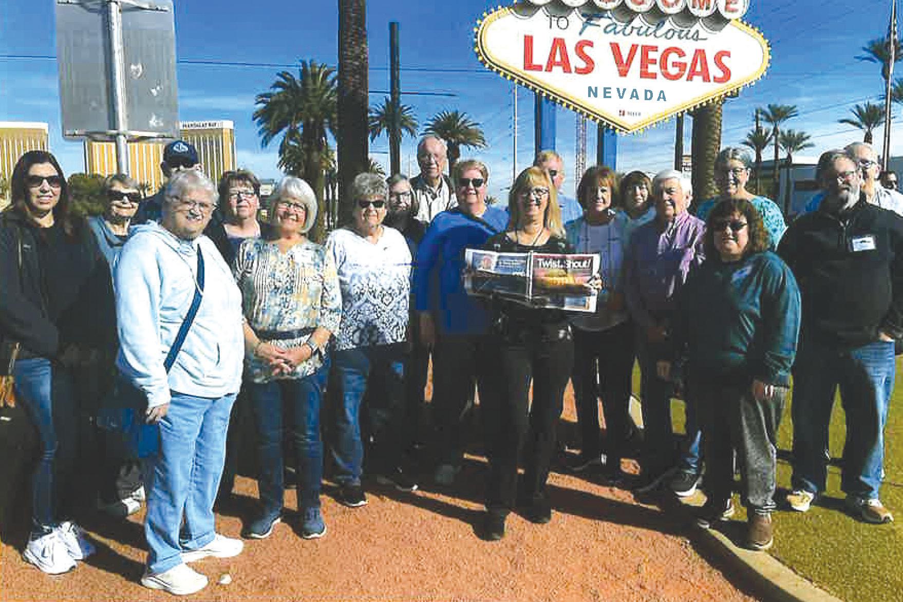 The Friendship Haven travel group enjoys time in Las Vegas. February 2025. Here they are visiting the famour Las Vegas sign.
