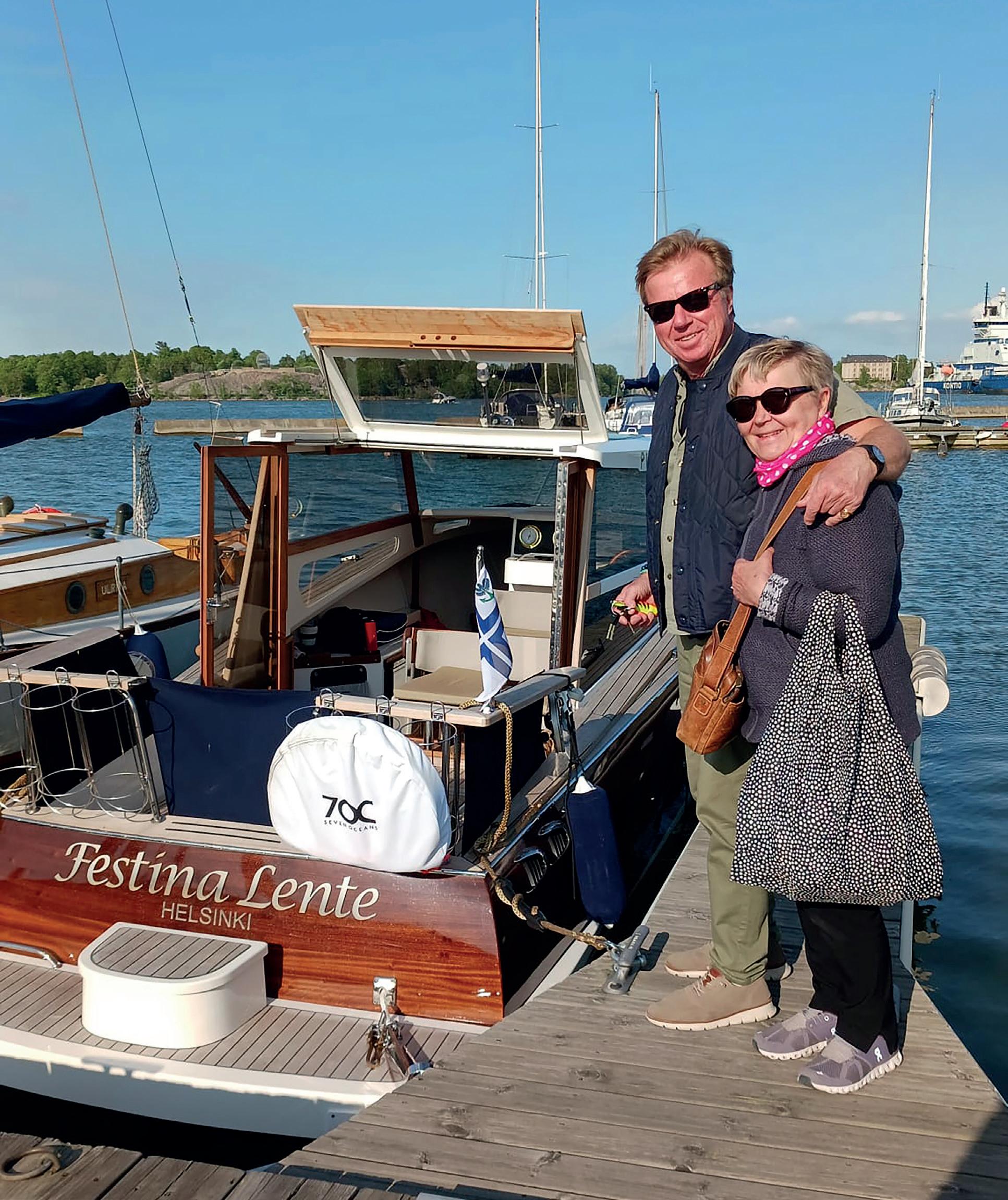 - Varmaankin ne ensimmäiset omat purjeveneet, mutta yksi miellyttävä matkavene pitää mainita. Se oli Winga 25, enemmänkin moottoripurjehtija, mutta juuri sopiva matkaveneeksi. Meillä oli myös yhteisomistuksessa Maxi 1100-purjevene, jolla teimme pitkiäkin matkoja Ruotsin saaristoon ja mm Göta-kanavalle.