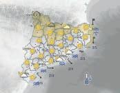 Màxima Mínima Estat del cel Cel cobert o molt ennuvolat al vessant nord del Pirineu al llarg de tota la jornada. A la resta del territori, cel serè o poc ennuvolat en general, si bé al sector central del litoral prelitoral, i est de la depressió Central hi haurà alguns intervals de núvols baixos de matinada i fins a primera hora del matí. A més, a partir de migdia arribaran bandes de núvols alts i mitjans per l’oest del territori.