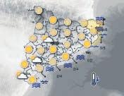 La temperatura mínima serà similar o lleugerament més baixa; hi haurà glaçades febles i localment moderades a punts de l’interior de la meitat nord del país. La màxima serà moderadament més alta arreu, si bé al sector central serà similar o lleugerament més alta.