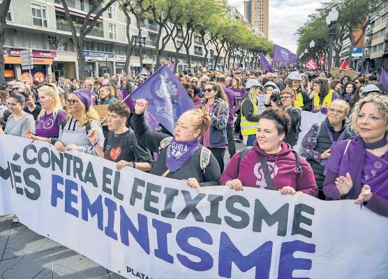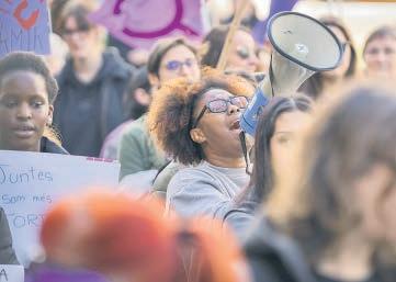 carrers. Tot i això, va advertir que alguns drets assolits amb anys de lluita estan «amenaçats», especialment el dret de l’avortament. «No tirarem enrere», va remarcar. Les manifestants van recórrer el centre de la ciutat fins a arribar a la plaça de la Font, on es va llegir un manifest per denunciar que el patriarcat i el capitalisme generen «opressions masclistes, racistes i classistes», i denunciar que la lluita feminista ha d’anar de la mà de l’antiracisme. «Necessitem continuar la lluita i conscienciar-nos que encara falta molt perquè la societat sigui realment igualitària», va afirmar la Sara, una treballadora de l’àmbit educatiu que va participar en la mobilització. «És important començar per la base», va apuntar, tot alertant d’un cert «retrocés» entre el jovent. També hi van ser presents les entitats del bloc antiracista i anticolonial, com l’Associació Indivisible. La seva presidenta, Mbamoussa Dembele, va explicar que volen «visibilitzar» les dones africanes de la ciutat i reclamar oportunitats i igualtat. Entre les seves demandes, va destacar facilitar l’empadronament i la regularització administrativa de les migrants: «Sense padró no hi ha papers i sense papers no hi ha accés a drets bàsics».
