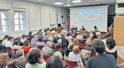 Imatge de la presentació que va tenir lloc ahir a la tarda i que va omplir de gom a gom la Biblioteca. Cedida