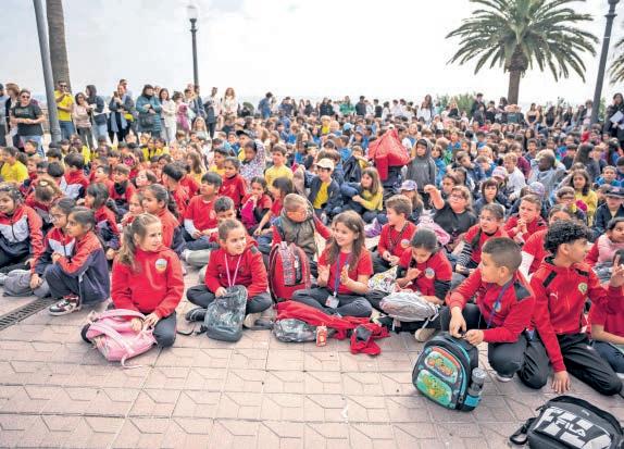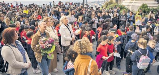 Desenes d’escolars es reuneixen davant la casa de l’escriptora en l’acte de lliurament de la setena edició del premi de poesia que duu el seu nom